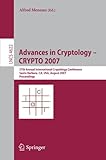 Advances in Cryptology - CRYPTO 2007: 27th Annual International Cryptology Conference, Santa Barbara, CA, USA, August 19-23, 2007, Proceedings (Lectur By Zip